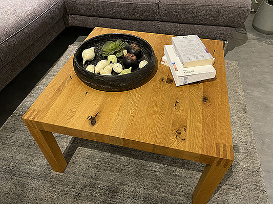 Couchtisch Loft, Wildeiche Naturöl, 70x70 cm, H 39,5 cm.