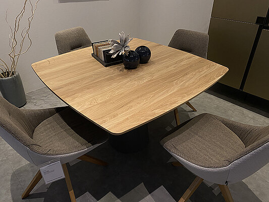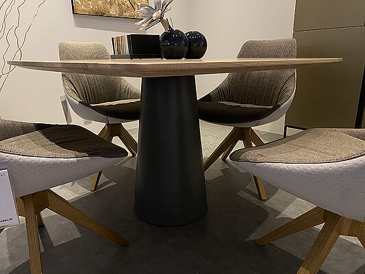 Esstisch Cono, Eiche Binaco, Gestell Onyx, 120x120 cm.