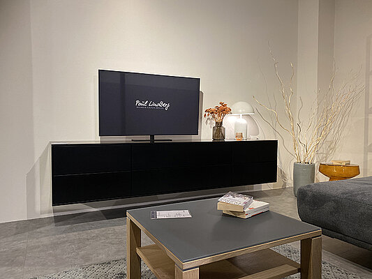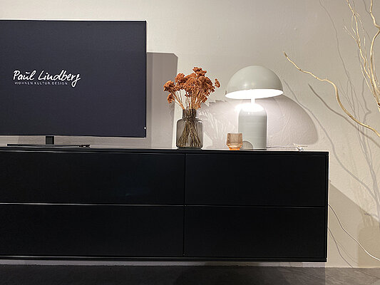 Lowboard Kara Frame, Musterring, Lack matt schwarz, BHT ca. 225/47,2/49,5 cm.